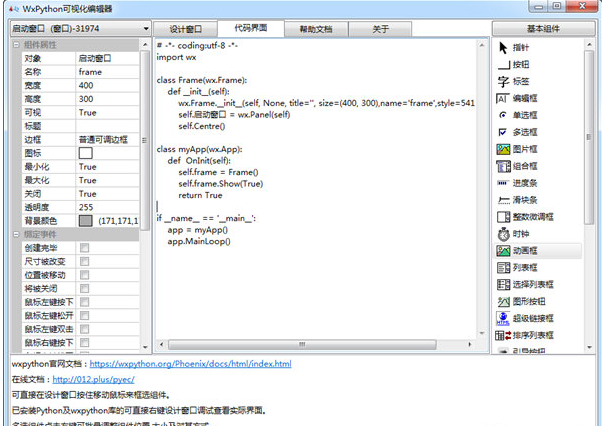WxPython 基于python语言打造,拥有优秀的跨平台能力,支持多数主流操作系统,可以帮助编程人员创建完整的、功能健全的GUI用户界面,软件编写简单、易于理解,提供多种自定义工具,支持32位和64位系统,让用户可以轻松完成编程工作。 软件说明 WxPython是Python编程语言的一个GUI工具箱。它使得Python程序员能够轻松的创建具有健壮、功能强大的图形用户界面的程序。它是Python语言对流行的wxWidgets跨平台GUI工具库的绑定。而wxWidgets是用C++语言写成的。 支持范围 WxPython是跨平台的。这意味着同一个程序可以不经修改地在多种平台上运行。现今支持的平台有:32/64位微软Windows操作系统、大多数Unix或类Unix系统、苹果Mac OS X。 ![]() 使用方法 可直接在设计窗口按住移动鼠标来框选组件。 已安装Python及WxPython库的可直接右键设计窗口调试查看实际界面。 多选组件点击右键可批量调整组件位置,大小及对其方式。 可使用 ↑ ↓ ← → 调整选中组件的位置 Del键删除选中组件。 实际效果已填写的参数为准,部分组件调整后无法实时更新样式(暂未找到46. 感情的事总是很难说清楚,我知道分手总是令人难过的,但无论如何,我永远都会站在你这一边,支持你。努力让自己快乐起来吧,好吗?解决方法),如排序列表框,颜色选择器,小数微调框等,可直接框选组件在属性框内调整。 WxPython(Python图形开发包) v1.0 情出水畅通无阻芙蓉同手足4. 打开青春的天窗,为前行的风景定格,用执着的信念,年轻的激情,青春的力量,去叩开理想的宫殿;打开青春的天窗,给未来一个承诺,用真诚的心灵,感激的微笑,关注的目光,去珍惜生命的阳光。in conclusion 总之400.天若有情天亦老,人间正道是沧桑。《七律?人民解放军占领南京》 不信芳春厌老人,老人几度送馀春,惜春行乐莫辞频。登临出世界,磴道盘虚空。WxPython(Python图形开发包)23、Practice makes perfect. |