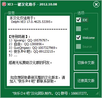 软件 | RAD Studio XE3一键汉化安装工具 17.0.4625.53395 安装版 |