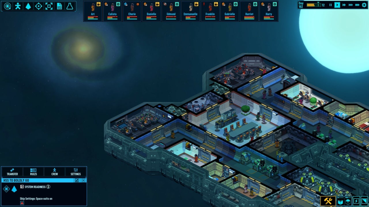 《太空避难所抢先版(Space Haven)》V0.19.0.16官方中文版[俄网GOG 2024.06.29更新1.17G] 率领一群身份复杂的下层社会平民,乘坐飞船踏上太空之旅,寻找新的家园。在这款太空船殖民地模拟经营类游戏中,你可以一砖一瓦地建造太空船,创造最佳的气体条件,管理船员的各种需求和情绪,遭遇其他宇宙飞行团体,并尽情探索广袤的宇宙。 设计和建造 自定义 - 完全自由地建造自己想要的太空飞船或太空站。你可将每块船体、墙壁、舱门和设施放在你希望的任何地方。 功能性 - 所有设施各有其用。船员可以睡在床上,也可以使用卫生间,他们会因嘈杂的房间而感到不愉快,也会因为一台游戏机而把你夸上天。 功能实用的太空船可以一砖一瓦地逐步建造出来,从而让你有机会根据自己的需求塑造太空船。它可以是对称的流线型,也可以具有不对称的古怪外观。不必非要与科幻小说中描绘的传统太空船相似。你可以完全自由地设计自己的太空船,一切由你做主! 模拟气体系统 氧气和二氧化碳 - 通过为全体船员构建生命支持模块,来保持最佳的氧气和二氧化碳浓度。 有害气体 - 某些设施和爆炸可能会释放出有害气体。建造洗涤器,以净化空气。 温度和电源 - 构建温度调节器,以便为所有船员保持理想的温度。构建电源节点,并设置整艘太空船的配电。 舒适度 - 将床构建在飞船核心旁边会影响睡眠。设计你的飞船,以确保船员感到舒适。 以等距方块拼贴而成的气体系统可以模拟飞船上的各种气体、温度和船员舒适度。人类、植物和设施会对其周围环境做出反应,从而为你设计的飞船和你创造的生活条件赋予意义。请确保设施安全,优化船员的生存水平和福祉,但同时也要考虑到未来可能发生的事故,以及船员战斗或环境危害造成的混乱。 深刻的人设 技能和特质 - 每位船员都有自己的技能组合和特质。懦夫可能连开枪都会害怕,消化能力强的人吃什么东西都不受影响。 情绪 - 快乐的船员需要食物、睡眠、舒适度、安全感和朋友。少了任何一样,他们的情绪都会受到影响。 状况 - 船员可能会感到冒险,忍受饥饿,感到不卫生,或者只是吃得太多。各种状况都会影响他们的感受。 精神崩溃 - 如果船员的压力过大,他们可能会精神崩溃。有些人会走出气闸舱发泄不满,而有些人则可能开始打架。 在《Space Haven》中,角色并非简单的机器人。这款游戏模拟了船员的需求、情绪、健康状况和技能,而且他们彼此会建立关系。以往的职业和爱好会影响他们的技能和诀窍,而且他们还具有积极和消极的性格特质。你将在寻找新家园的持续旅程中,见证不同船员的欢乐时刻、沮丧情绪和戏剧性事件。 使命 远征任务 - 装备新船员,并组织远征队,以探索废弃飞船,或造访其他派系的太空站或太空船。 征募 - 征募和派遣船员,以攻击敌人并解救好友。 物品栏 - 每位船员都有自己独特的物品栏。请为其装备、、手等武器。 为船员装备太空服和武器,并组织远征队,以探索废弃的飞船和太空站。探索并抢救资源和物品;找到有人冻在里面的已激活冷冻舱。造访其他派系的太空船或太空站,找到数据日志,从中了解到以往寻找新家园的太空旅行者的故事。 船员战斗和外星人 船员战斗 - 与敌方派系或外星人物种交战。 外星人 - 你将目睹外星人击倒并活捉你的船员,看到船员在外星人巢穴中受苦,并决定是否解救他们。 外星人会捕捉船员,将他们带回基地并裹得像蚕茧一样靠在墙上。你将看到船员在外星人巢穴中受苦,并决定是否解救他们。探索废弃的飞船,从中找到被外星人捕获的原飞船船员。类似事件将为你的新船员创造有趣的背景故事。 飞船对战 战斗就位 - 与敌人进行飞船对战时,你将看到船员进入作战位置,还将看到他们在战斗中将炮弹装入炮塔,扑灭爆炸引发的火灾,修补船体缺口,修复重要设施。 战术 - 瞄准敌军飞船发动机,阻止其逃离。你会看到他们对你采用同样的战术。直接向其炮塔射击,或尽力专注于敌军飞船核心,看着他们的飞船变成漆黑一片。构建护盾以保护自身飞船最重要的部分。 建造炮塔并在飞船对战中运用战略:撞击和爆炸可能导致任何一方出现火灾、硝烟、有害气体、乃至船体缺口的雪球效应。所有船员需要齐心协力才能赢得战斗。 健康建模 冷冻舱 - 保护船员免受星际旅行副作用的影响。使船员处于停滞状态,以冻结疾病的发展或等待救援。 医疗 - 为船员治疗伤痛、伤口和疾病。医疗状况会以多种方式给船员带来影响。 船员会在战斗中负伤,并可能患上严重疾病。设置医疗室,扫描疾病和异物,让你手下最好的医生治疗疾病和进行外科手术。希望你的医生不要心不在焉,把手术工具落在船员体内。 星系和派系 生成的星系 - 每次通关均会探索一个按程序生成的新星系,其中包括行星、小行星以及其他派系的太空站和太空船。 派系 - 与按照自己的方式努力生存和建立统治地位的各个派系进行互动。结识海盗、商人、奴隶贩子、邪教徒等各类派系,并与他们分别建立关系。 资源 - 挖掘原始资源,并将其精炼成建筑材料。与你遇到的其他团体交易资源。 每次通关均会探索一个按程序生成的新星系,其中有按照自己的方式努力生存和建立统治地位的各个派系。你将遇到海盗、奴隶主、商人、邪教徒和机器人等各种派系。跃入超空间,寻找资源,结识各类团体并