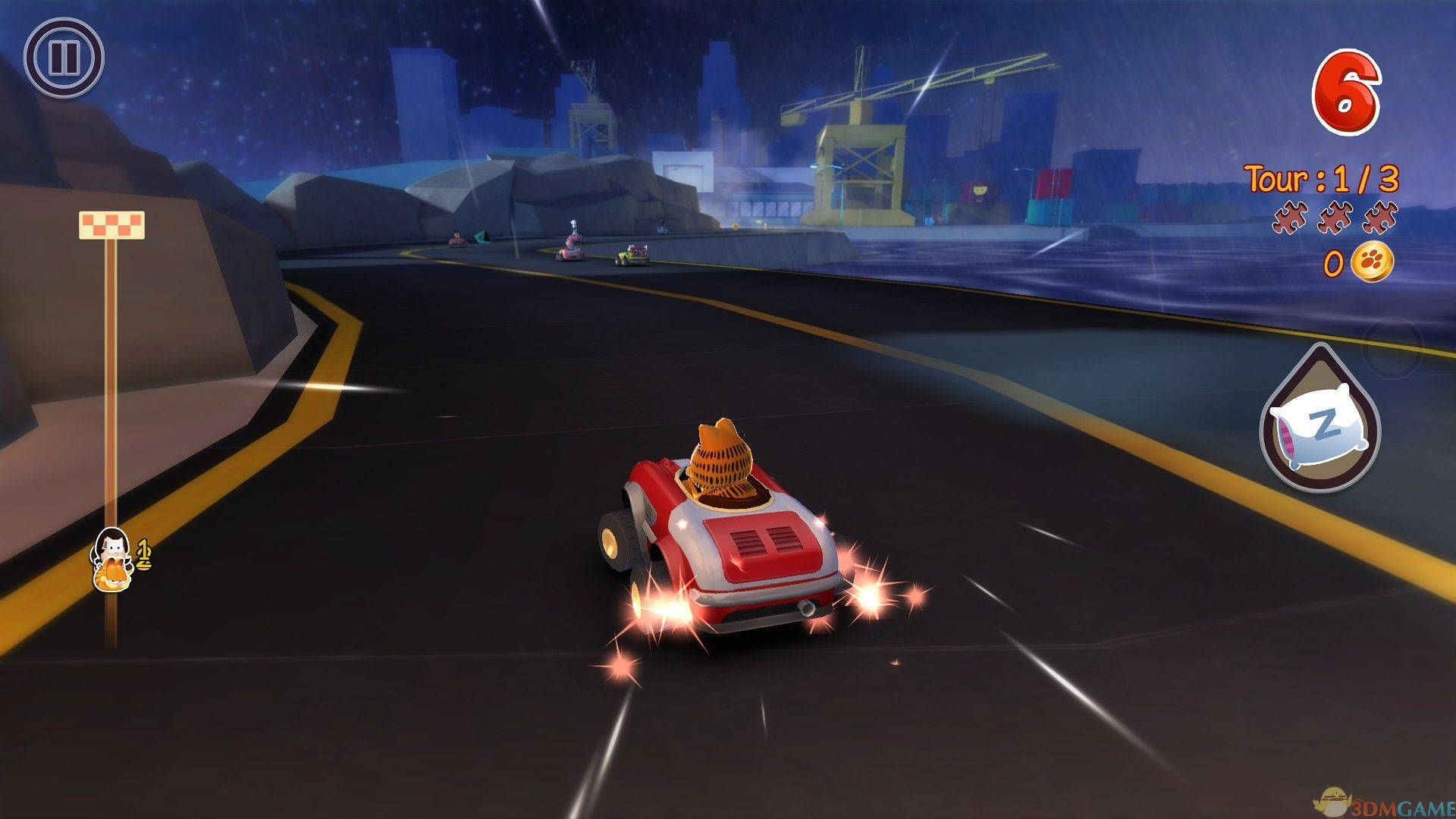 游戏名称:加菲猫卡丁车 英文名称:Garfield Kart 游戏类型:赛车竞速类(RAC)游戏 游戏制作:D-pad studio 游戏发行:D-pad studio 游戏平台:PC 发售时间:2013年 游戏介绍 《加菲猫卡丁车 Garfield Kart》是一款以加菲猫为主题的赛车游戏。游戏中除了那只好吃懒做的加菲猫外,它的小伙伴如小狗奥迪、Nermel、Jon等也会悉数登场。道路两旁的场景也将紧扣加菲猫动画进行设置,让玩家在赛车之余能够重温一遍童年的美好。游戏支持在线多人模式和本地模式,支持跨平台的多人对战。使用你的驾驶技巧,以及一些疯狂的攻击防御道具,勇夺第一!游戏有3种游戏模式,大奖赛,单人赛以及计时赛。你还可以自定义你的角色,以及卡丁车的配件。 配置要求 Windows XP/Vista/7/8 DirectX 9c 1 GHz 1 GB RAM 安装信息 1. 解压缩 2. 载入镜像 3. 安装游戏 4. 运行游戏 游戏截图