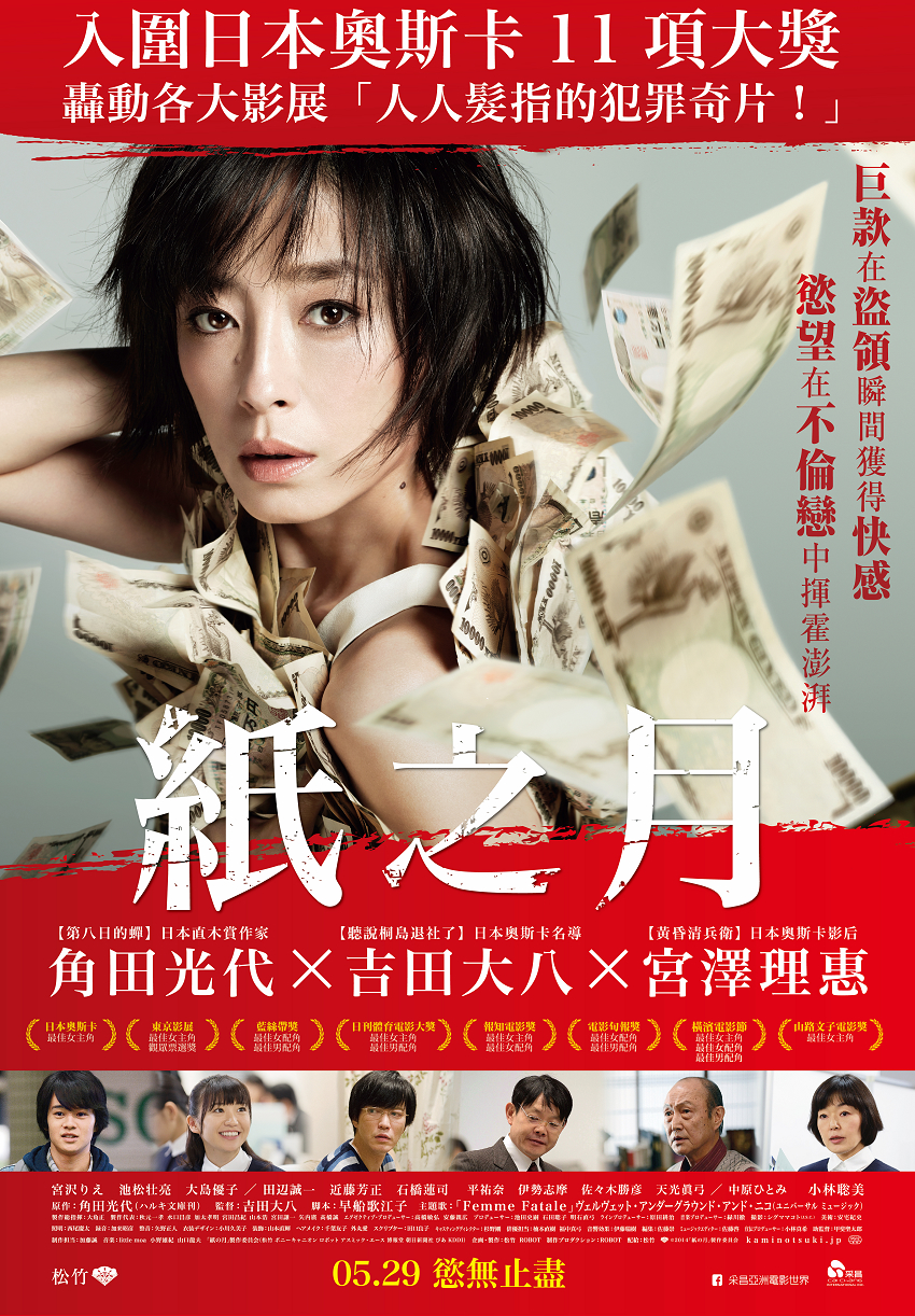 ◎译 名 纸之月 ◎片 名 紙の月/Pale Moon ◎年 代 2014 ◎地 区 日本 ◎类 别 剧情 ◎语 言 日语 ◎导 演 吉田大八 ◎主 演 宫泽理惠 池松壮亮 大岛优子 田边诚一 近藤芳正 石桥莲司 小林聪美 伊勢志摩 佐佐木胜彦 ◎获奖记录 日本电影学院奖 Japan Academy Awards 2015 最佳女主角 Best Actress 宫泽理惠 最佳新人 Newcomer of Year 池松壮亮 ◎简 介 故事发生在1994年,成家多年的梅泽梨花(宫泽理惠 饰)和丈夫正文(田边诚一饰)过着安宁富庶的生活,几近完美的人生,也许婚后无子是梅泽夫妇最大的遗憾。当前,梨花以兼职的身份在若叶银行供职,她工作认真,谨慎细心,周到诚恳地为行动不便的老年客户提供理财服务,为此得到了上司井上(近藤芳正饰)和客户们的高度评价和信任,也和分行的老资格事务员隅由里子(小林聪美 饰)、年轻貌美的窗口接待员相川惠子(大岛优子饰)合作默契,相安无事。 一切看似美好无忧,可是莫大的空虚感却一波又一波地向梨花袭来,似乎并不知道该怎样疼人的丈夫有如一块冰山,寒冷孤独以及不被人需要的落寞让梨花对当下的生活产生越来越多的不满。平静的外表下,她压抑着一颗时刻渴望逃离的心。直到某个晚上,因业务关系梨花去富裕的独居老人平林孝三(石桥莲司饰)家拜访,在那里结识了老人正在上大学的孙子光太(池松壮亮 饰)。完全没有任何交集、并且走着不同人生路的两个人,冥冥中被什么东西所牵引,彼此越走越近。 这一天,刚刚拜访完客户的梨花来到购物中心,当她准备购买化妆品时却发现现金不足。她自然而然地将从客户那里收来的一万日元现金抽出付款,回到银行后马上从自己的户头中取出现金补了进去。也许这是一个不经意间的小片段,但从第一次挪用公款开始,她的命运已完全转到了未知的方向。 为了帮光太筹措200万日元的学费,梨花将客户交给她的300万日元存款转入自己户头,并伪造了定期存款证书和分行的公章,成功瞒过了银行和客户双方。谁也没有想到,曾经如天使一般圣洁正直的梅泽梨花,不知不觉落入了凡间,挣扎于万劫不复的泥沼之中。她享受着和光太挥霍金钱、品味浪漫爱情的梦幻人生,也一次次叮嘱自己有朝一日一定要补上亏空,可又在虚幻的幸福迷梦中任凭本不该存在的债台直线高筑。直到某天,一丝不苟的隅由里子察觉到银行账面的异状,她将怀疑的目光投向了梨花。 梅泽梨花亲手为自己打造了不得超生的金钱地狱… ◎花 絮 ·本片在日本国内260块银幕上同时公映,首周初登场排名第二位,观众满意度排名第八位。影片预定将在韩国、香港、台湾等国家和地区上映。 ·《纸之月》根据角田光代荣获第25届柴田炼三郎的同名原作改编,此前曾由NHK电视台拍成全五回的电视剧搬上荧屏,由原田知世担任女主角。 ·这是宫泽理惠自《来自猎户座的请帖》以来首部主演的电影,由于梨花的角色涉及不伦之恋和非法侵占财物,并且有比较火辣的场面,所以理惠最初读剧本时犹豫不决,无法立即决定出演。 ·首映式上,导演坦言最初影片计划濒临流产,而宫泽同意参演使一切扭转。宫泽则懊悔因为肌肉拉伤不能全力演出,导演给她的信中写道“为了抓住更重要的东西,再度踏上旅程吧!”令理惠当场落泪。 ·此前剧组一直发愁平林光太的人选,吉田大八当初和池松壮亮在舞台剧《ぬるい毒》中有过合作,导演对这个青年演员赞赏有加,称其能以出色的演技表现出平太外热内冷的精神状态,因此邀请壮亮出演。 ·导演读原著时感觉小说好像狰狞地像世间露出了獠牙一样,为了表达敬意,他挑战性地创造了两个新角色:梨花在银行的同事隅由里子和相川惠子。惠子是大岛优子从AKB48毕业后首次出演的电影角色。 ·主题歌选用了美国著名后摇乐队地下丝绒于1967年发表的专辑《The Velvet Underground Nico》中的歌曲《Femme Fatale》。 ·根据剧情需要,剧组奔赴泰国取景,原计划只拍摄当地的风景,但在宫泽理惠的建议下导演还拍摄了曼谷街头示威的民众。在日本国内外景地主要集中在神户,剧组和专门进入真正的情人旅馆拍摄。 ·导演始终纠结如何表现“世间伦理被情感的獠牙所撕开的那一瞬间”,关于梨花的结局也一直不能决定。在此期间,吉田导演反复听天主教的颂歌和性手机游戏软件下载乐队主唱Sid Vicious演唱的《My Way》。 ·影片于2014年11月2日在东京新宿举行首映式,现场派发了500张特制的纸币,纸币上印着宫泽理惠的正面半身像,另有用罗马拼音写成的“吉田大八导演作品”和“若叶银行,一百万日元”的字样。 ·理惠凭借该片荣获第28届山路富美子最佳女演员奖,这是她继《我的广岛父亲》以来第二次荣获该殊荣,历史上只有她和吉永小百合两度摘得桂冠。理惠还在2014年东京国际电影节上获封最佳女主角奖。 ·大岛优子被导演称为“黑色妖精”,宫泽理惠也称赞这位小后辈聪颖机敏,凡是导演的指示讲解她都能迅速领悟,并淋漓尽致表演出来。 ·饰演少女时代梨花的平祐奈于2014年11月16日举行了自己的写真日历销售会,照片全部在7月的镰仓拍摄。 ·剧组专门制作了警示主题的海报,海报中央是被一万日元包围的宫泽理惠,下方则有警察署的提示:“通过邮包和快递运送现金的业务是100%的诈骗”。该海报张贴在警察署、派出所、地铁站等公共场所。13070 【影片参数】 引用 Pale Moon 2014 BluRay REMUX1080p AVC DTS-HD MA 5.1-HDS Disc Info: Di