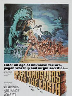 ◎剧情简介: When Dinosaurs Ruled the Earth is a movie starring Victoria Vetri, set in the time of cavemen. The film was made by Britain's Hammer Films. Like several of Hammer's previous films, such as One Million Years B.C. (1966), the film portrays dinosaurs and humans alongside each other. Directed and scripted by Val Guest, it was based on a treatment by J.G. Ballard, and nominated for an Oscar for its visual effects.
