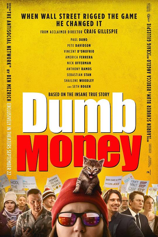 ◎标 题 傻钱 ◎译 名 笨钱效应(台) / 玩谢华尔街行动(港) / 韭菜大战华尔街 ◎片 名 Dumb Money ◎年 代 2023 ◎产 地 美国 ◎类 别 剧情 / 喜剧 / 传记 ◎语 言 英语 ◎上映日期 2023-09-08(多伦多电影节) / 2023-09-15(美国) ◎IMDb评分 6.9/10 (33315人评价) ◎IMDb链接 https://www.imdb.com/title/tt13957560/ ◎豆瓣评分 7.1/10 (7308人评价) ◎豆瓣链接 https://movie.douban.com/subject/36082226/ ◎导 演 克雷格·吉勒斯佩 Craig Gillespie ◎编 剧 丽贝卡·安吉洛 Rebecca Angelo 劳伦·舒克·勃鲁姆 Lauren Schuker Blum 本·麦兹里奇 Ben Mezrich ◎演 员 保罗·达诺 Paul Dano 塞斯·罗根 Seth Rogen 皮特·戴维森 Pete Davidson 亚美莉卡·费雷拉 America Ferrera 尼克·奥弗曼 Nick Offerman 安东尼·拉莫斯 Anthony Ramos 塞巴斯蒂安·斯坦 Sebastian Stan 谢琳·伍德蕾 Shailene Woodley 塔莉娅·莱德 Talia Ryder 戴恩·德哈恩 Dane DeHaan 克兰西·布朗 Clancy Brown 文森特·多诺费奥 Vincent D'Onofrio 米哈拉·赫罗德 Myha’la Herrold 凯特·伯顿 Kate Burton 鲁西·科塔 Rushi Kota 克里斯蒂娜·布鲁卡托 Christina Brucato 德尼兹·阿克代尼兹 Deniz Akdeniz 萨尔·伦迪诺 Sal Rendino 布莱恩·伯顿 Bryan Burton 丹尼斯·法尼 Dennis Funny 温斯洛·布莱特 Winslow Bright 杰拉尔多·罗德里格斯 Gerardo Rodriguez 亚历克斯·汉默利 Alex Hammerli 安·玛丽·尤奥 Ann Marie Yoo 拉里·欧文斯 Larry Owens 卓拉·辛普森·卡塞贝尔 Zora Casebere 诺埃尔·泰勒·托里斯 Noel Tyler Torres 尼古拉斯·卡莱罗 Nicolas Calero 艾弗里·科尔 Avery Cole 丹尼斯·奥伊 Denis Ooi 布莱恩·大卫·特雷西 Brian David Tracy