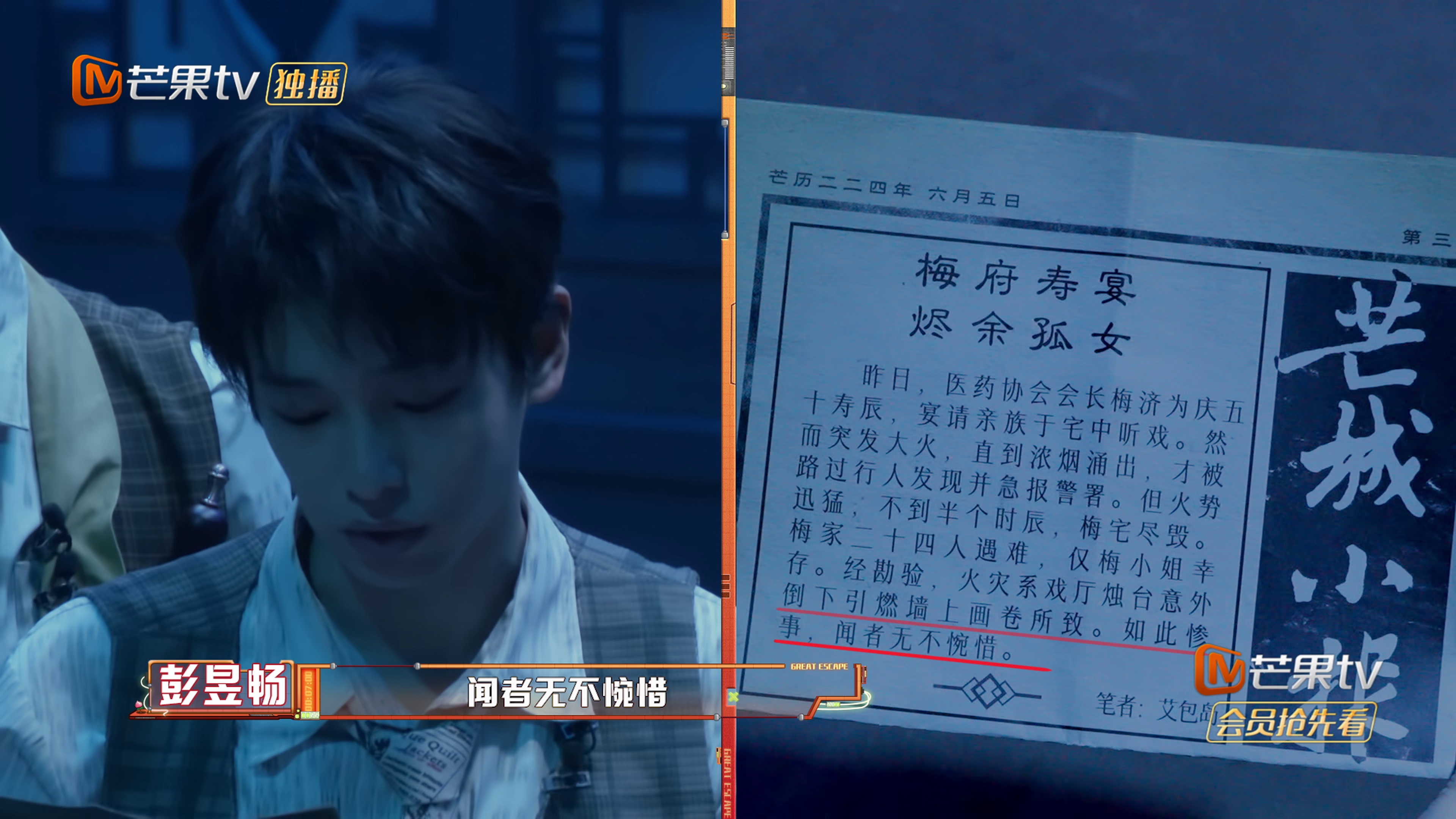 ◎简 介 大型益智类实景解密真人秀节目,本季以“生存者季”为概念主题,通过构建更具挑战难度和危机感的场景,搭配创新的玩法机制,使得每期能够成功逃脱的人数充满不确定性。置身其中,嘉宾们需调动全部的勇气、智慧与潜能,在艰难探索与决策过程中,不断突破自身局限,实现自我超越。