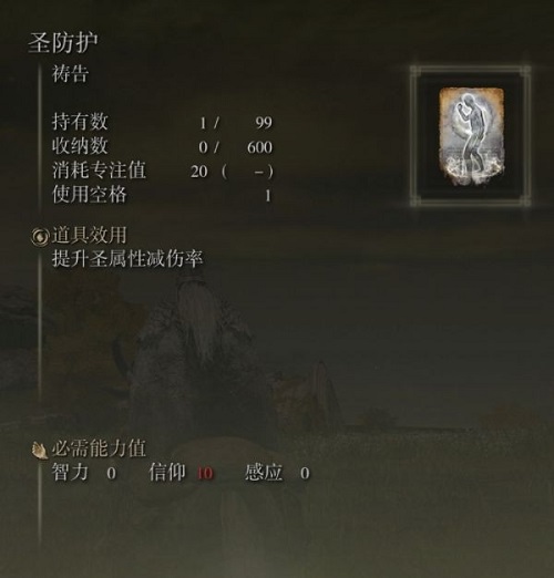 小伙伴们知道艾尔登法环圣防护怎么获取吗?今天小编就来讲解艾尔登法环圣防护的获取方法,感兴趣的快跟小编一起来看看吧,希望能够帮助到大家呢。 该祷告的描述如下。  该祷告的消耗及属性要求如下。  该祷告位于啜泣半岛【灵庙原野的废墟】旁的大块建筑残骸上。  消灭建筑残骸上的粪金龟即可获得该祷告。  艾尔登法环游戏玩法 游戏中会有主线作为引导,但玩家随时都可以去其他地方冒险。六大区域的主线地图与作为枢纽的隙间之地无缝相连。 游戏包含城堡、墓穴、遗迹、沼泽、洞窟等场景。 游戏包含精力值设定,但总体上对玩家的影响较小。 玩家可以跳跃,以躲避敌人的攻击或探索地图。 游戏包含快速旅行系统,玩家也可以骑马探索。 游戏包含类似《黑暗之魂3》中的战技系统,但本作的战技不由武器而定,而是可以与不同武器任意搭配。 以上就是给大家分享的艾尔登法环圣防护怎么获取的全部内容,感兴趣的小伙伴们速来围观吧! |