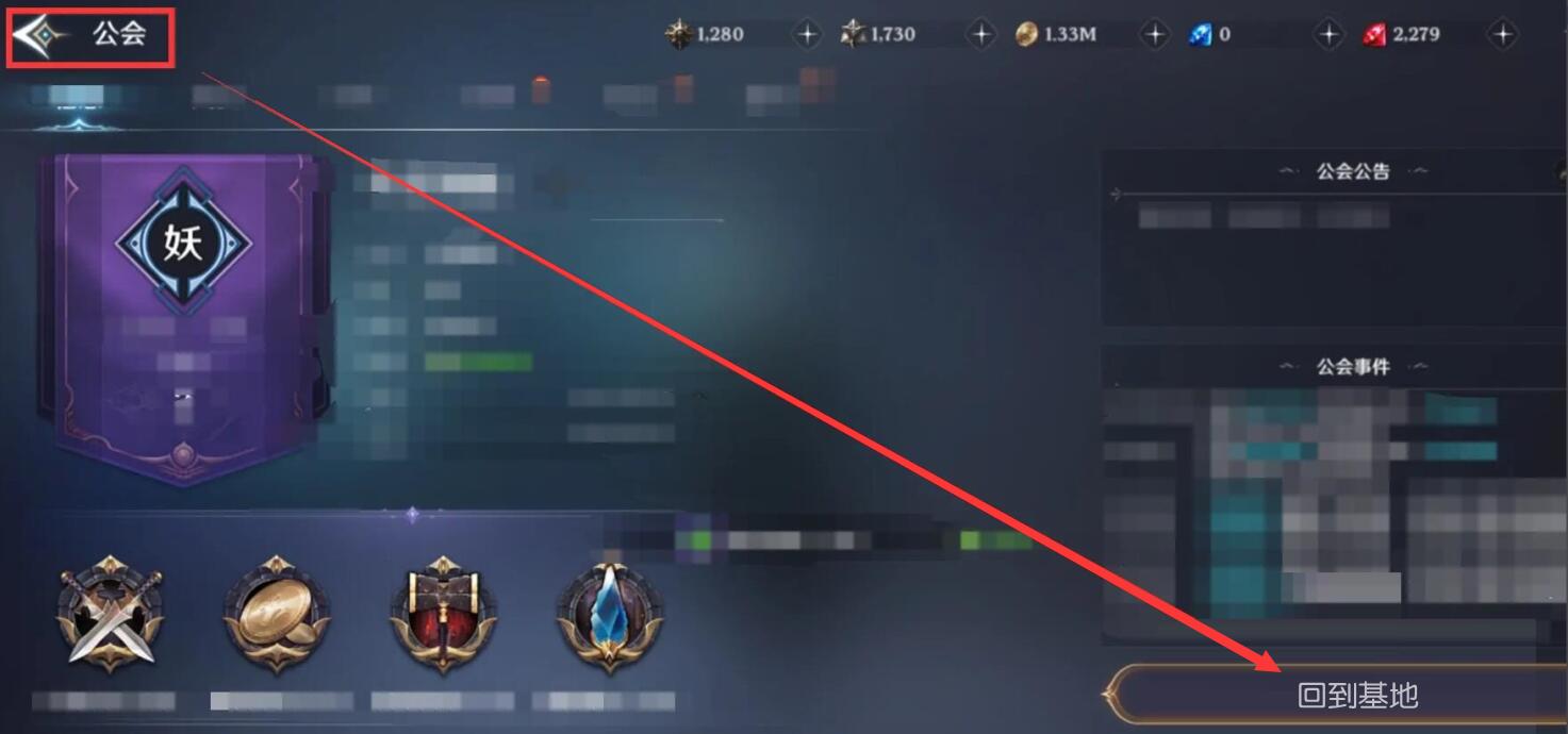 首先,进入无神之界游戏主页面,先进入公会页面——回到基地