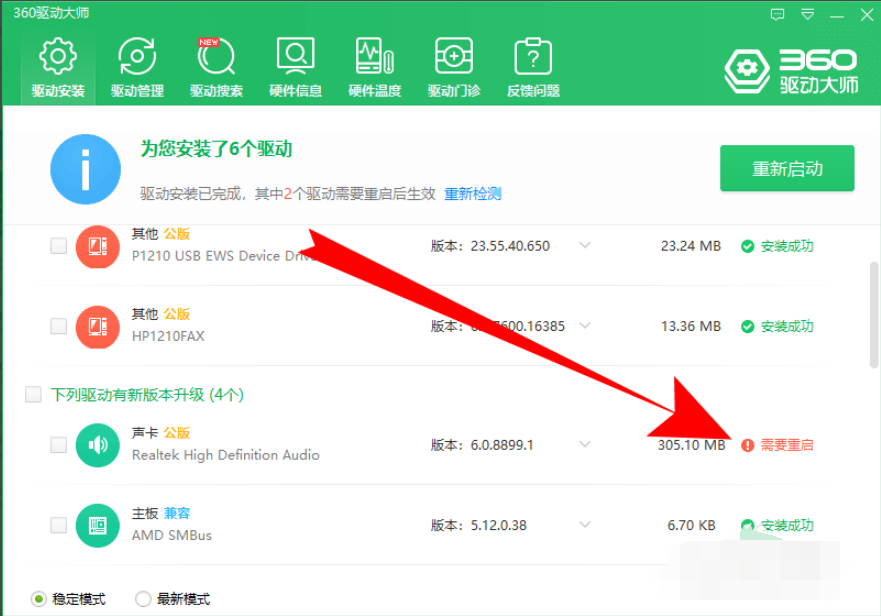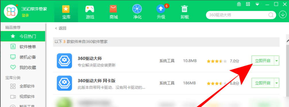 小伙伴们知道360驱动大师如何升级驱动吗?那么今天小编就来讲解360驱动大师升级驱动的方法,感兴趣的快跟小编一起来看看吧,希望能够帮助到大家呢。 方法一 1.在电脑里安装并打开360驱动大师  2.进入360驱动大师主界面之后,选中上方的【驱动安装】  3.然后选中一个需要安装的驱动  4.点击如图位置,选中需要升级到的驱动版本  5.最后点击【升级】就可以了  方法二 1、打开电脑,点击360安全卫士。  2、进入360安全卫士,点击软件管家。  3、搜索360驱动大师,点击立即开启。(也可以单独网上下载360驱动大师)  4、点击进入360驱动大师,界面会自动扫描电脑内的驱动。 扫描完成后,点击显卡后面的升级。  5、页面弹出下载中,等待一会。  6、升级成功后,点击需要重启,重启电脑后,显示即升级成功了。 |