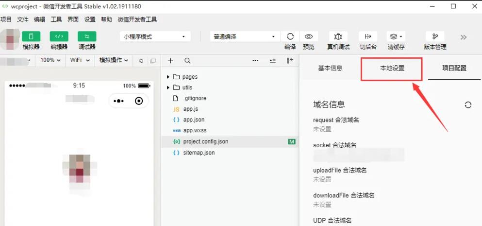 接着,进入项目配置后,点击“本地设置”,如下图所示。