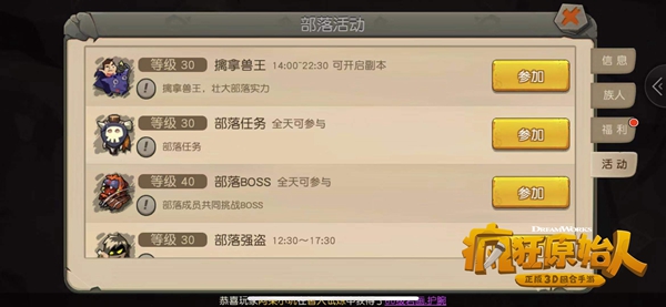 疯狂原始人手游中的部落族贡该如何获得呢?为了方便大家学习,那么下面就分享一下疯狂原始人手游部落族贡获得方法吧,大家可以参考操作。 【部落技能】不仅可以烹饪食材,强身健体提高防御血量值,最关键的是能够制作出装备材料。  但是想要制作出高等级的装备,除了部落等级够高之外,还需要自己把部落技能升级,升级需要消耗一定的银贝和族贡。等级越高,所消耗的族贡越高。  玩家想要获得族贡,需要通过做部落任务啦获得哦。  【部落任务】【部落BOSS】【部落强盗】【世界BOSS挑战】等一系列部落活动,都会奖励大量的族贡。其中部落任务和部落BOSS这种单人且全天开启的任务,性价比十分高,建议每天不要落下,跑一圈任务下来,升级部落技能的族贡就完全够了。  做完任务不要忘了把背包里的【部落手册】上交给部落女祭司,这也可以获得大量的族贡值。 看了上面的疯狂原始人手游部落族贡获得方法后,是不是觉得操作起来更得心应手了呢? |