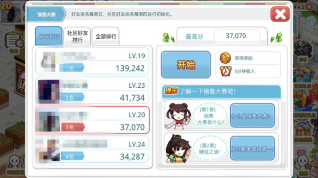 我的便利店游戏大家都很熟悉吧,今天为大家介绍的是社交系统,为了方便大家学习,今天分享一下我的便利店社交系统具体玩法,大家可以参考。 玩法一:挽救商品,打扫卫生,获得奖励 当你的商品来不及点收过期了,可以呼喊好友帮你挽救,好友家玻璃脏了,顺手搽一搽,金币体力奖励全都有。  玩法二:在你门口摆一个路边摊 设置好摊位以后,可以邀请好友到家中摆摊,也可以到好友家中看看有没有空余摊位,共同获利,走向人生巅峰。 玩法三:工召唤好友帮你缩短生产时间,互相分享生产收获。  玩法四:参加销售大赛,努力提升销售额,和好友比一比说的排名更高,更有超级华丽超级有feel的奖杯等你拿哦!  玩法五:去好友家捣捣乱,也可以获得奖励哦。 关于我的便利店社交系统具体玩法,小编今天就为大家讲解到这里,希望能够帮助到大家. |
