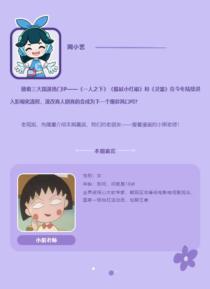 漫改真人剧因更符合Z世代(通常指1995年至2009年出生,与互联网信息时代无缝对接的一代)的审美需求而广受网络年轻观众追捧。据不完全统计,近年来,从立项、制作、播出等不同阶段的真人影视项目近几十个,也有新人、新作不断涌入,其中有《一曲三笙》 《长歌行》这样的大制作,也有《火王》 《救了一万次的你》这样的轻制作。 根据IP来源,大致可以分为以下两类。第一,海外动漫IP是真实的。这类动画多改编自日韩,如曾经风靡一时的台湾省偶像剧《燕山派与百花门》 《流星花园》,东方卫视播出的热血体育题材电视剧《恶作剧之吻》,2020年爱奇艺自制青春剧《网球王子》。一般这些剧都是选自海外真人成功改编的作品,所以更接近于海外电视剧的翻拍,比如《棋魂》 《深夜食堂》 《交响情人梦》 《W两个世界》等。题材以女生言情为主,为迎合女性观众喜好而“定制”。 二、国产动漫IP写实。郭曼适应历史悠久,从《三毛流浪记》到《粉红女郎》不等。随着郭曼产业的发展和影视产业链的成熟,真人漫改剧的类型日益多元化,从以古装、甜宠、青春校园等题材为主,逐渐扩展到都市奇幻(《一人之下》)、末世科幻(《灵笼》) : 首先,漫改并不是一个新概念。比如漫威漫画的系列电影,堪称漫改的“天花板”。 其次,漫改在网剧创作领域的火爆主要源于两点:一是性价比高。与同类型的网络文学作品相比,目前,投国漫IP的影视授权改编费用大约只有前者的几分之一甚至十分之一。所以网络文学顶级IP触底后,高口碑大流量的动漫作品逐渐成为抢手货。第二,原创郭曼的崛起和国内二次元产业链的完善,为剧集提供了稳定的观众基础和稳定的底层逻辑。郭曼大部分进入影视改编程序的作品都在连载中积累了很高的人气,泛二次元用户对IP的忠诚度极高。此外,上下游在内容生产、发行渠道、衍生链条上都走上了正轨。当工业化进程突然加快,出现巨大需求时,市场当然会选择投入产出比更高的对象。由此,郭曼迅速获得各方关注,进入井喷上升期。 一、海外IP如何本土化?海外漫画IP本土化最大的症结在于改编中往往忽略了国情的改编。在长期的连载中,动漫人物已经在粉丝心中形成了先入为主的印象,但是日韩漫画中的很多人物和情节并不能原封不动的移植到中国。所以一个优质的海外IP是真人改的,尊重原著只是基本要求,核心还是要完成“本土化”的赋能。以某平台即将上线的校园青春剧系列《开画!少女漫》(又名《月刊少女》)为例。该剧改编自日本漫画家鹤川的连载漫画《月刊少女野崎君》,讲述了一群有共同兴趣爱好的大学生,集体创作漫画《去恋爱吧》,收获成长、梦想、爱情的故事。原著凭借对日本传统少女漫画各种模式的反常规演绎和解构而走红。曾被改编成同名电视动画,是一部有着成熟内容基础和受众群体的作品。 骨髓血液中的海外亚文化基因在给节目带来呈现不一样风格的机会的同时,也伴随着诸多挑战。主角在055-79000年创作的教导女生/中学生如何谈恋爱的漫画,触及了“早恋”的话题,所以不太合适