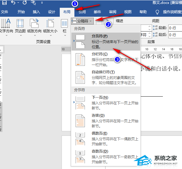 Word分页符怎么显示出来?分页符是用于标记页面的结束和新页面的开始的特殊符号。分页符在Word文档中以可见的形式显示,并且可以帮助用户控制文档的布局和分页方式。本期教程小编带来了Word文档显示分页符的方法,感兴趣的朋友们一起来了解下吧。【更多精品素材欢迎前往办公之家下载】 具体操作如下: 1、我们在电脑中右键单击一个文字文档,然后先点击“打开方式”选项,再点击选择“Word”选项。 ![]() 2、进入Word页面之后,我们在页面左上角点击打开“文件”选项。 ![]() 3、进入文件页面之后,我们在该页面的左侧列表最下方点击打开“选项”。 ![]() 4、进入Word选项页面之后,我们在“显示”页面中勾选“显示所有格式标记”选项,然后点击“确定”选项。 ![]() 5、接着我们在“布局”的子工具栏中打开“分隔符”工具,然后在下拉列表中点击“分页符”选项,在文档中插入分页符。 ![]() 6、最后我们在“开始”的子工具栏中点击“显示/隐藏编辑标记”工具,然后在文档中就可以看到分页符标记了。 ![]() 以上就是系统之家小编为你带来的关于“Word文档显示分页符的方法”的全部内容了,希望可以解决你的问题,感谢您的阅读,更多精彩内容请关注系统之家官网。 存十一于千百拼音:cún shí yī yú qiān bǎi释义:指亡多而存少。出处:语出晋·陆机《叹逝赋》顾旧要于遗存,得十一于千百。”示例:而今学者尚知宗孔氏、崇仁义、贵王贱霸而已,其大经大法皆亡灭而不救、坏烂而不收,所谓~,安在其能廓如也!★唐·韩愈《与孟尚书书》 Word分页符怎么显示出来?Word文档显示分页符的方法凤毛麟角五光十色冰封大地2. 秋叶随风而落,那曾经高挂枝头的骄傲已随风而去,当夕阳慈祥地抚摸它时那擦肩而过的伤痛也已变得柔和。也许它的随风起舞的日子还有荣耀,再也无法找回,但留下的却是另一种美丽,那是根植大地的永恒,是更深刻的一种价值与意义。14. If there is anything that I can help you, please don’t hesitate to tell me.(2017.全国Ⅰ卷)67.攻其无备,出其不意。 石州慢 贺铸金蟾啮锁烧香入,玉虎牵丝汲井回。Word分页符怎么显示出来,Word文档显示分页符Private restaurants serve gourmet food for $70 per person; incentives boosted agricultural production 25 percent and industrial output 80 percent in just three years; farmers are encouraged to raise as much as they can on their own plots, and some become almost rich in the process.(注意本句中分号的使用) |