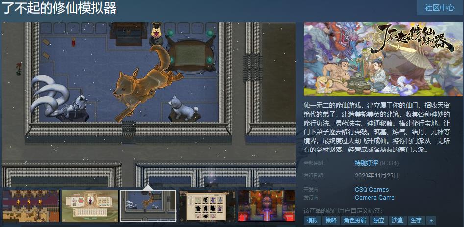 《了不起的修仙模拟器》正式版上线 Steam,售价 88 元,并支持简体中文界面、语音和字幕。  《了不起的修仙模拟器》是一款拥有 Roguelike 要素,融合了生存、角色扮演、策略等要素的模拟经营游戏。游戏受到《矮人要塞》、《RimWorld》、《新蜀山剑侠传》、《天下霸图》等作品的启发,旨在为玩家模拟出独一无二的修仙之旅。 在游戏中,玩家将从上帝视角指引角色生存生产并建立自己的门派。在这一过程中,你将感受角色遭遇的意外或惊喜,解决他们面临的危机与困难,亲手打造专属于你的修仙传奇。 每一次重新开始就是一次全新的地图,在随机的地形中找到合适的地点,让世间万物成为你的助力。在沙盒的世界里,做你想做的,不用拘谨,一切随心所欲。在山洞里群居还是在湖面上搭造楼阁亦或是用灵石当地板的奢华享受,皆由你自己决定。 你可以选择潜心修行,突破层层困难飞升成仙;也可以闯荡天下,收集天材地宝,留下赫赫威名;或是采集天下灵草,炼制奇丹神药;亦或是成为炼器大师,铸造神器法宝,流芳百世。 |