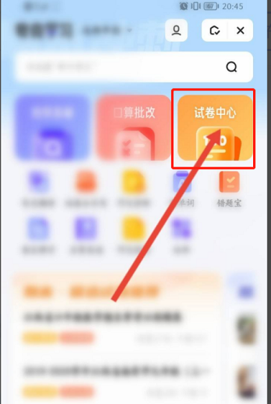 第二步:进入之后,点击试卷中心选项。