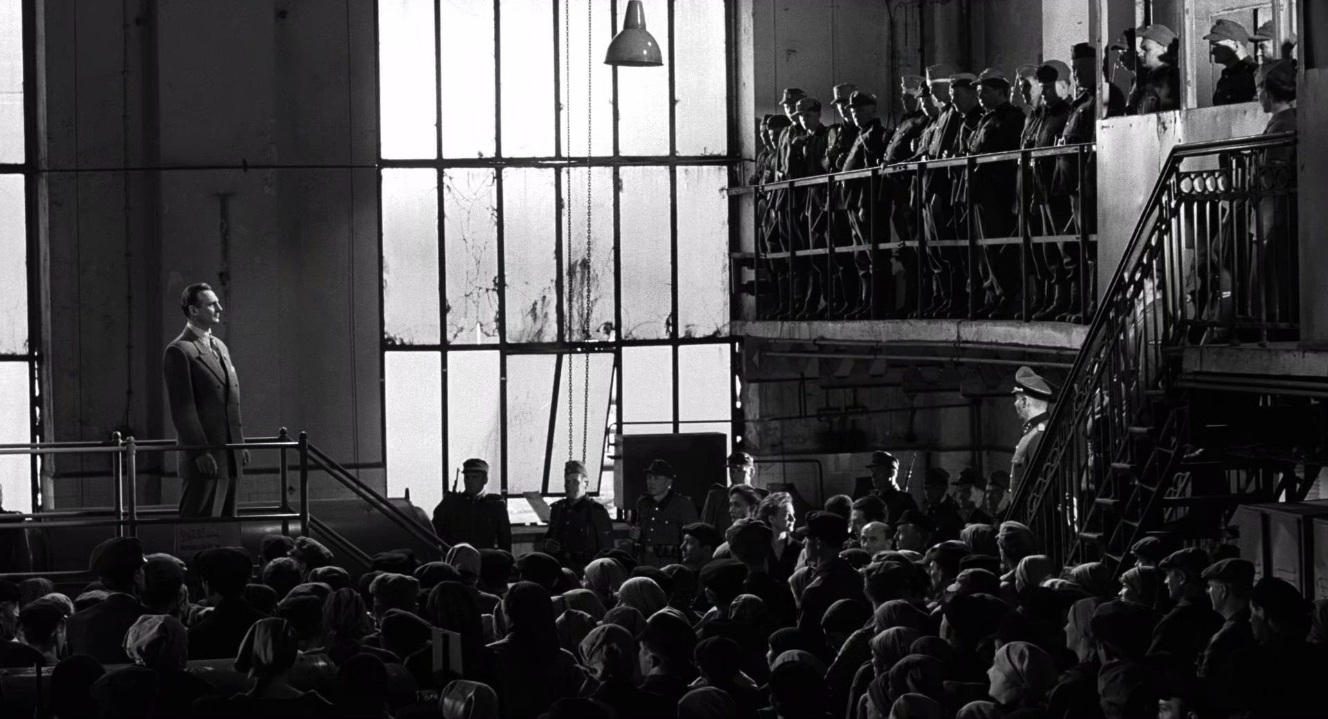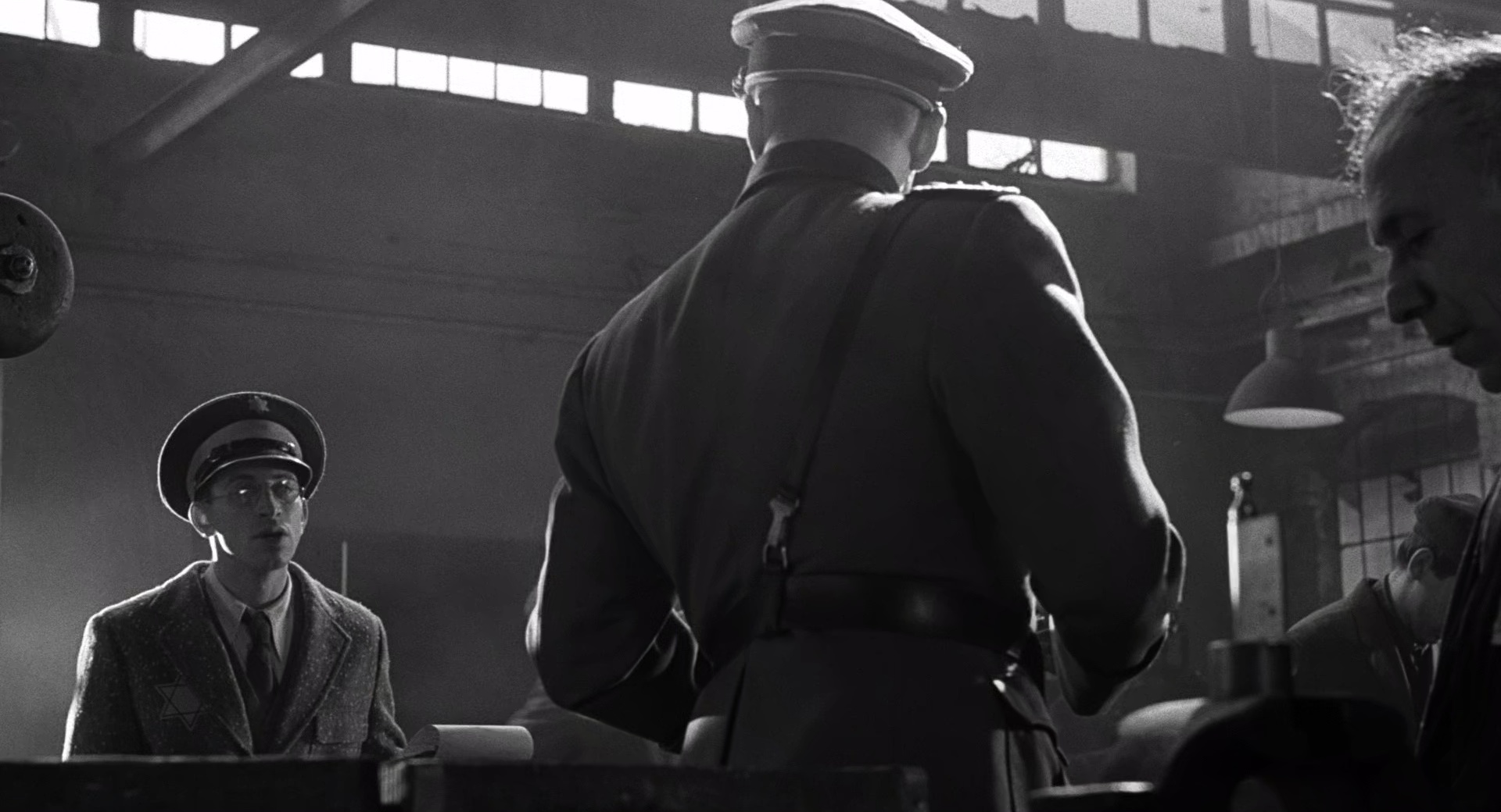 1943年,克拉科夫的犹太人遭到了惨绝人寰的大屠杀,辛德勒目睹这一切,受到了极大的震撼,他贿赂军官,让自己的工厂成为集中营的附属劳役营,在那些疯狂屠杀的日子里,他的工厂也成为了犹太人的避难所。