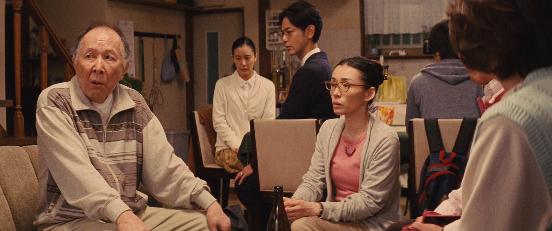有些电影一开场不靠大场面,就能把人拽进去,《家族之苦3》差不多就是这种路子。它没有故作高深,也不端着,镜头对准的就是一个普通家庭里每天都能见到的琐碎事:做饭、收拾、抱怨、忍耐,还有那种“反正她会处理”的理所当然。说实话,这种题材最难拍,拍轻了像流水账,拍重了又容易说教,但这部片子拿捏得挺稳。你一边笑,一边又会觉得心口被轻轻扎了一下,尤其是家里有人长期承担家务的人,代入感会很强。 影片的核心其实很简单,围着“妻子”和“主妇”这两个词转。平田家本来就不是什么岁月静好的完美家庭,老人有老人的脾气,丈夫有丈夫的迟钝,孩子也有孩子的闹腾。偏偏在一次意外事件后,原本一直默默撑着家的史枝终于不想再忍了,干脆离开家,留下这一大家子原地发懵。很多人看到这里可能会觉得,这不就是家庭矛盾升级版吗?可电影有意思的地方就在于,它没把事情写成撕破脸的大冲突,而是用一种很日常、很温吞的方式,把压在心里的不满慢慢翻出来给你看。 如果你看过这个系列,大概会知道它一贯喜欢从家里的小事故下手,然后把全家人的性格一点点带出来。这一部延续了前作的味道,还是那个熟悉的平田家,还是那些让人又气又想笑的人物,只不过这次真正站到台前的,是过去总在忙前忙后、却最容易被忽视的妻子。个人觉得这个切入点选得很聪明,因为很多家庭喜剧爱拍吵闹的长辈、笨拙的丈夫、添乱的孩子,但真正把家庭运转起来的人,常常反而没什么存在感。电影等于把这个“隐形劳动力”直接拉到聚光灯下面了。 剧情并不复杂,甚至可以说相当生活化。某天家里遭了贼,连冰箱里藏着的私房钱都没保住,本来就压着火气的史枝,在丈夫一通埋怨之后彻底心寒,选择离家出走。她一走,家里立马就乱了套。谁做饭,谁洗衣,谁打扫,谁照顾老人,谁去处理那些看起来不大、做起来要命的琐事?踩过坑的都知道,家务这种东西平时看不见,一旦没人做,才会发现它像潮水一样往你脸上拍。 这部电影最妙的一点,是它不是靠激烈台词制造冲突,而是靠“失去之后才发现原来她做了这么多”来推动情绪。平日里大家总会把主妇的付出当成背景音,像空气一样,存在但不被认真看见。等到史枝离开,原本嘴上嫌这嫌那的人,才开始和扫地、洗碗、烧饭、照顾病人这些事情正面对线。那种手忙脚乱、状况频出的狼狈样,真的挺好笑,可笑完又让人有点沉默,因为现实里很多家庭就是这么过来的。 导演山田洋次太懂这种东方式家庭关系了。他不急着评判谁绝对有错,也不刻意放大某个人的恶意,而是把那种长期累积的小忽视、小轻慢、小抱怨拍得很准。你会发现,这家人里没有真正意义上的坏人,可每个人都在不知不觉中消耗着那个最能忍的人。这种感觉特别真实。不是惊天动地的背叛,不是狗血翻车,而是每天一句“这点事你怎么还没弄好”,慢慢把一个人的耐心磨掉。 夏川结衣演的史枝,我个人觉得是全片最值得夸的一环。她没有那种戏剧化的大爆发,更多时候是在眼神、停顿和语气里传达情绪。看她在家里忙来忙去时那种习惯性的克制,再看她决定离开后的平静,你会明白这个角色不是突然任性,而是真的撑太久了。她把一个被家庭责任包裹住的中年女性演得很自然,不用猛掉眼泪,也不用掀桌子,观众照样能感受到她的累。 西村雅彦饰演的丈夫幸之助也挺有代表性,这角色说坏吧,未必有多坏;说好吧,又真让人看得来气。他属于那种典型的“享受照顾但不自知”的人,很多事默认妻子会做好,出了问题第一反应还是埋怨。现实里这种人不少,甚至可能就在身边。所以看他在电影里的表现,会有种很微妙的熟悉感,甚至想吐槽两句:都这样了,你还没意识到问题在哪,心也是真大。 桥爪功和吉行和子这对老搭档还是稳定发挥,家里老两口的戏几乎不可能不好看。尤其是老人面对家庭变化时,那种嘴硬、别扭、又有点可爱的反应,给整部片子添了很多温度。桥爪功演这种表面倔、内里不算坏的老父亲太顺手了,一个眼神就能让人发笑。吉行和子的存在感也很舒服,她不是那种抢戏式的表演,但会让整个家庭戏更像一个真的家,而不是一堆设定凑在一起。 系列里熟悉的配角们也都在,像妻夫木聪、苍井优这些人的出现,会让看过前作的人有种“老朋友还在”的亲切感。不过说白了,这一部最出彩的不是谁单独发光,而是群戏之间的配合特别顺。每个人都像现实家庭里会出现的一类人:有爱讲大道理的,有甩手习惯了的,有好心但帮倒忙的,有平时不吭声关键时刻才露出情绪的。凑在一起,就很有烟火气。 别看它挂着喜剧标签,这片子的笑不是那种包袱砸脸式的搞笑。它更像是你坐在旁边看别人家鸡飞狗跳,越看越觉得熟悉,然后忍不住笑出来。很多笑点都来自家务劳动的“反噬”:不会做饭的人硬着头皮下厨,不会整理的人把家弄得更乱,平时看不起的小事突然全变成难题。说实话,这种笑带着一点心酸,尤其对长期做家务的人来说,甚至会有种“你们也知道难了吧”的微妙爽感。 电影里对家庭主妇处境的描写,没有刻意拔高成社会议题,却比很多大声喊口号的作品更有力量。因为它讲的是特别具体的东西。谁记得冰箱里剩什么菜,谁知道老人吃药时间,谁能同时顾上丈夫、孩子、公婆和整间屋子的运转?这些看上去不值一提的细节,实际上最耗人。很多人嘴上会说“你