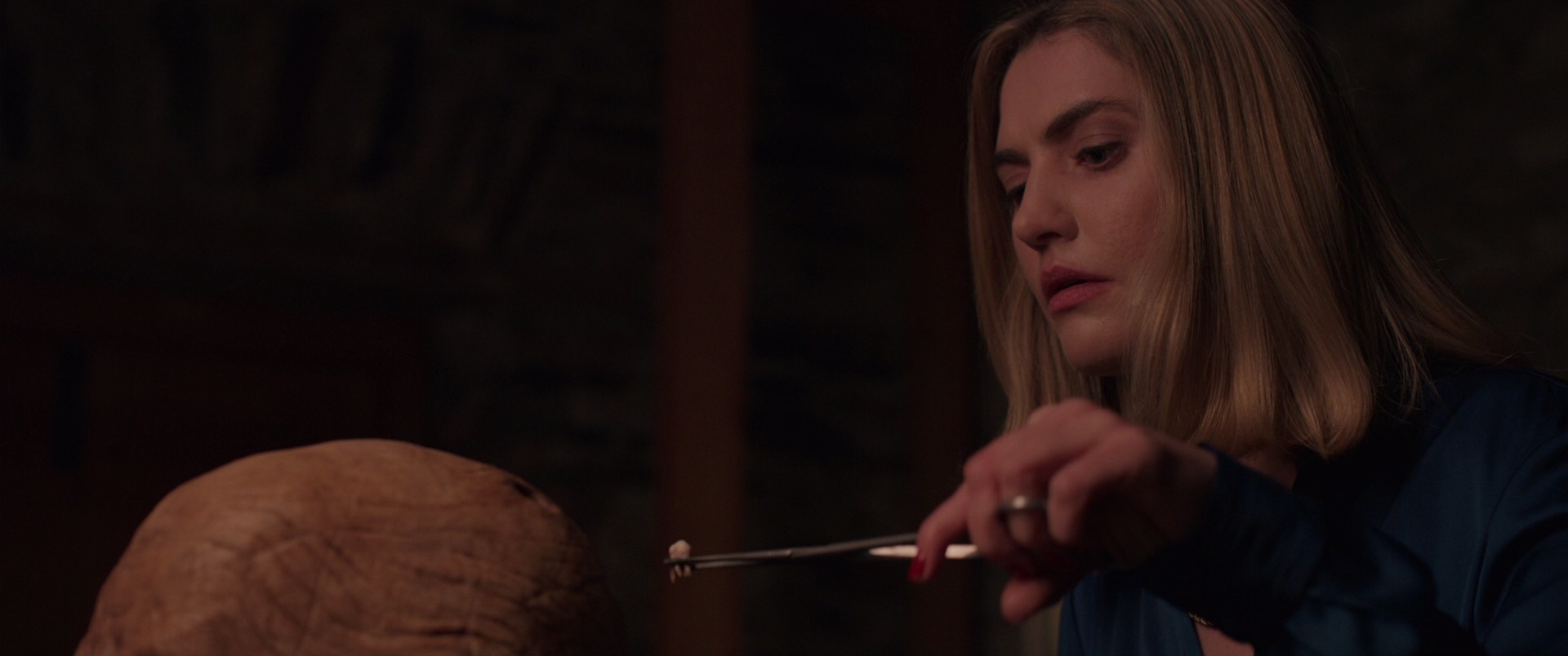 有些恐怖片一开场就拼命吓你,生怕观众走神;《咒物寻凶》不是这个路数。它更像把你带进一栋安静得过分的房子里,灯没多亮,四周也没多少人说话,但你就是会下意识觉得不对劲。那种不安感来得很慢,却特别缠人。说实话,这种片子更考验导演功力,因为一旦气氛垮了,整部电影就容易显得又闷又假。 影片的故事其实不复杂,核心就是一桩发生在乡间别墅里的命案。女主丹妮原本和丈夫泰德在翻修一栋偏僻的房子,结果她死在了那里。表面上看,嫌疑像是指向精神病院里的人,毕竟泰德本身就是那家精神病院的医生,整件事天然带着一点让人心里发毛的背景。可问题也正出在这里,嫌疑人没多久也死了,案子看似有了交代,实际上反而更像被硬生生盖住了。 一年之后,电影真正有意思的地方才开始冒头。丹妮的双胞胎妹妹达茜上门了,这个人设挺抓眼球:她是盲人,自称通灵者,还收集各种带着诅咒意味的物品。这样的角色放在恐怖片里,本身就自带一种让人不敢轻视的感觉。她不是那种大吼大叫的复仇者,整个人反而冷静得有点过头,越平静越让人不舒服。 如果只看简介,你可能会以为这是那种标准的“姐姐被害、妹妹复仇”的直线型故事。真看下来会发现,片子更在意的是把怀疑一点点塞进每个角落。谁在说谎,谁隐瞒了事情,谁看起来正常却最不正常,这些疑问并不是靠台词直接甩出来,而是靠场景、停顿、眼神和房子本身的压迫感慢慢积累。踩过坑的都知道,悬疑恐怖片最怕观众提前猜完,这部片至少在过程上还算有拉扯感。 导演达米安·麦克·卡西这次还是延续了那种很会“省着拍”的风格。没有把恐怖做成血浆乱飞的展览,也不热衷于拿音效硬砸你耳朵。镜头经常停在一些你觉得没什么、但又隐约觉得有东西会动的地方,那种等待感很折磨人。个人觉得,这种拍法比很多靠突然跳脸吓人的作品耐看得多,因为它不是吓完就完,而是会在你脑子里留个钩子。 影片最成功的一点,大概就是它特别懂“空间恐惧”该怎么用。乡间别墅、封闭房间、走廊、门缝、看不清的角落,这些元素其实并不新鲜,可它把这些老工具重新摆弄得挺有味道。尤其当观众知道达茜是盲人之后,你会不自觉更关注声音和空间距离。她看不见,但电影反而让你觉得,真正没看清状况的人,也许不是她。 卡罗琳·布莱肯在片中的表现挺撑场面,一人分饰双胞胎角色本来就有难度,更别说两个角色的气质差异还不能流于表面。丹妮的存在感主要来自回忆与案件本身,而达茜则是全片最有压迫感的人物。她不需要靠夸张动作抢戏,光是坐在那里,说几句平平的台词,就已经能把气氛压下来。说白了,这种角色演过头会很假,演轻了又没劲,她这次拿捏得还不错。 格威利姆·李饰演的泰德也挺关键,因为这个角色几乎牵着整部片的怀疑链条往前走。他表面身份很体面,是医生,也是命案受害者的丈夫,可越往后看越会让人觉得哪里不对。电影没把他塑造成那种脸谱化的可疑人物,而是让他维持一种“似乎合理”的状态。也正因为如此,角色才更有那种现实里的别扭感——你很难立刻指认他有问题,但就是不太信任他。 影片里另一个能让人记住的点,是它对“咒物”这个设定没有玩得太花,却用得挺准。很多同类电影一提诅咒物品,就恨不得摆满一屋子古怪道具,生怕观众不知道自己在拍灵异片。《咒物寻凶》相对克制,重点不是收集多少怪东西,而是让某个物件真的带来心理压力。当一个看着就不祥的东西被郑重其事地带进家里,接下来哪怕它什么都没做,观众心里那根弦也已经绷起来了。 这片的节奏估计会劝退一部分只想看高能的人。它不是十分钟一个爆点的快餐片,有些段落甚至会故意放慢,让你在安静里等事发生。要是你喜欢边看边刷手机,八成会觉得它慢;但如果愿意沉进去,那种越来越浓的诡异味会很上头。个人感觉,这部电影最适合晚上独自看,最好关灯,外面再有点风声,代入感一下就上来了。 剧情层面它还有个优点,就是没把悬念说得太死。很多恐怖片一遇到背景设定就爱疯狂解释,生怕观众有一点没懂,结果反而把神秘感讲没了。这里的信息给得不算多,却足够让人顺着线索往下追。你能拼出大概的轮廓,但总有一些位置故意留白,这种处理其实挺聪明,因为恐惧本来就很依赖想象空间。 不过要说缺点,也不是没有。电影在某些桥段上还是能看出类型片套路,尤其当人物做出某些决定时,你会忍不住在心里吐槽一句“别去啊,这不就是送人头吗”。还有些情节转折虽然服务气氛,可要认真较真逻辑,未必经得起反复推敲。只是话说回来,恐怖片很多时候本来就不是靠绝对严丝合缝取胜,它更看重情绪有没有把你拽进去。这部片在这方面完成度还行,所以小瑕疵没有特别毁观感。 从恐怖类型细分来看,它更偏心理惊悚和哥特式阴森,不是那种满屏血肉横飞的重口味作品。片中会有一些让人不适的镜头和较强的紧张场面,但总体不算极端血腥。胆子不算大的观众也不是完全不能看,只要你能接受压抑气氛和突然袭来的惊吓点。反倒是对灵异、诅咒、封闭空间这些元素特别敏感的人,看完之后可能更容易后劲上来。 电影只有98分钟左右,这个长度其实挺讨巧。恐怖片最怕拖,一旦超过某个时长,观众的神经会从紧张变成疲劳。《咒物寻凶》基本没有明显注水,主线围绕命案、怀疑和复仇推进,整体还算