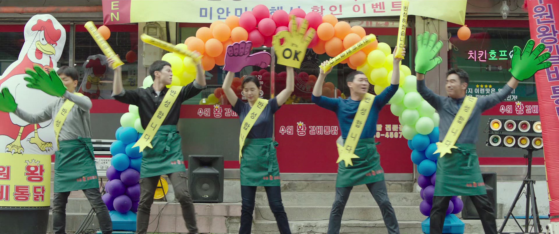 我对这片印象最深的,不是打架也不是枪战,而是那种“人都快混不下去了还得硬撑”的憋屈感。几个人在炸鸡店里蹲点,表面装得像普通店员,心里其实天天想着怎么把案子搞定。说实话,这种设定一听就很扯,但它偏偏扯得很顺。你会一边觉得荒唐,一边又忍不住想看他们还能怎么圆回来。 故事大概是这么回事:一支五人缉毒小组业务能力被领导嫌弃,任务没起色还老挨骂。为了盯住对面的毒贩窝点,他们干脆在对面炸鸡店扎根,原本只是借个据点监视,结果店快倒了,几个人索性亲自下厨做起生意。更离谱的是,炸鸡居然好吃到爆,生意火到电话响不停。案子要查,客人要伺候,副业越做越大,这种“左右手互相打架”的状态,踩过职场坑的人看了真的会笑出声。 它好看的一点在于,笑点不是那种硬塞段子,而是从角色的狼狈里自然冒出来。你能感觉到他们是想认真办案的,但现实总把人往奇怪的方向推。尤其当炸鸡店突然爆红时,那种从“蹲点打工人”变成“餐饮顶流”的落差,太有戏了。可别以为全程只是在闹,电影里对缉毒行动的推进也一直在走,只是每次要严肃就会被突发状况打断,节奏反而更带劲。 演员这块我个人挺买账。柳承龙演队长那种“我很努力但老被命运按头”的气质特别到位,脸上写着疲惫,嘴上还得强撑着带队。李荷妮的存在感也很强,不是花瓶,她那股子干练劲儿一出来,整个小组像突然多了个能把场面稳住的人。陈善圭、李东辉、孔明这几位配合得很顺,五个人在同一个空间里互相拆台又互相兜底,有一种很真实的“烂队友也是队友”的化学反应。反派那边也不弱,申河均的气场让人一出戏就知道不好惹,压迫感是有的。 动作部分算是惊喜,属于“喜剧外衣下真有几下子”。打斗设计不算花里胡哨,但够清楚、够痛快,偶尔还会用环境和道具做出很搞笑的反差。它不会把动作拍成纯炫技,而是服务剧情:你能理解他们为什么要动手,也能理解他们为什么动手时还一脸无奈。要提醒一句,如果你只想看纯搞笑,可能会觉得中后段动作比例变高;但如果你能接受喜剧里掺点硬菜,那这段反而很解压。 观影建议方面,这片特别适合想轻松又不想太低幼的时候看。情绪很丧、想找点“靠努力也许能翻身”的爽感,它也能给到一点点;但它毕竟还是商业片,不要指望深刻社会议题。对节奏敏感的人也不用担心太慢热,开场就把人设和困境抛出来,很快进入状态。画质上是1080P并带HDR版本,设备支持的话暗部和高亮会更有层次;繁体字幕对大多数人阅读没压力,但个别用词可能更偏港台习惯,习惯简中的需要适应一下。还有一点,片中出现韩语、普通话、英语、日语混杂的场面,反而挺贴合情境,不会让人出戏。