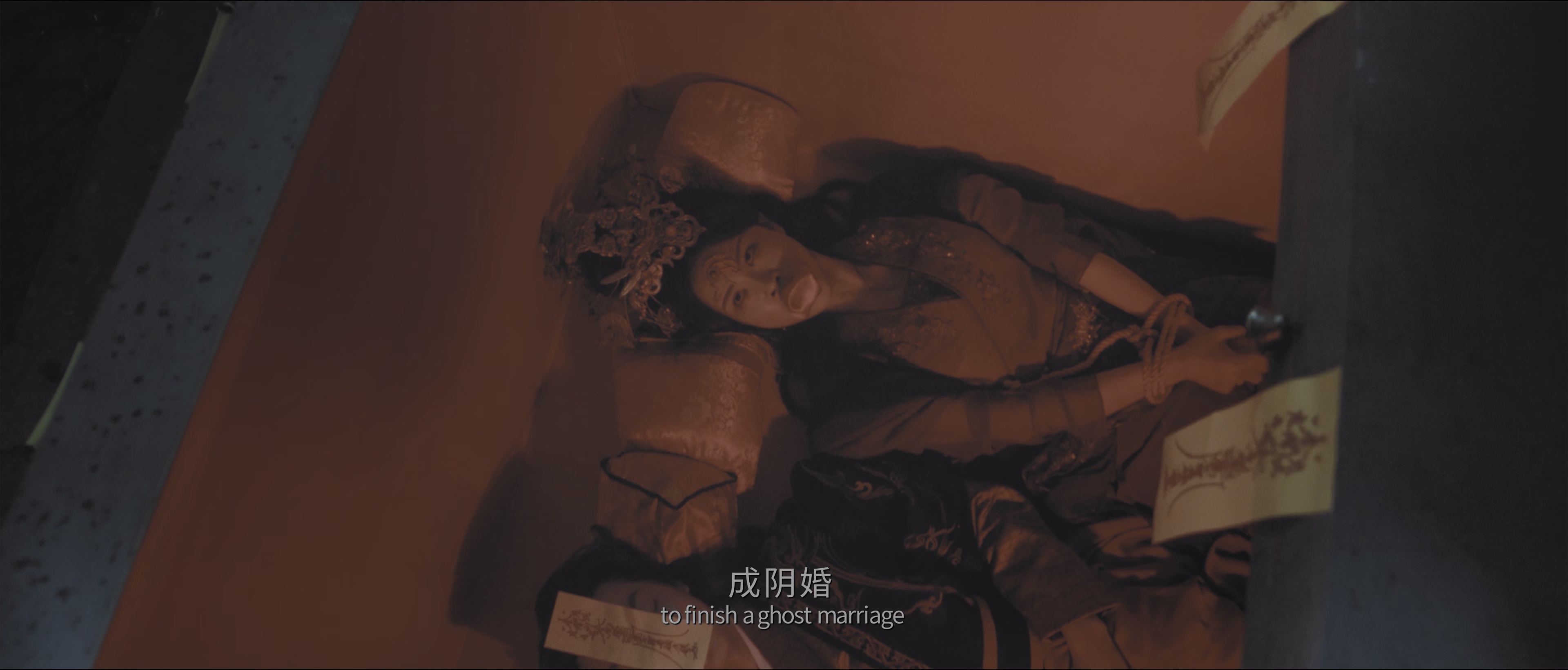 有一段气氛特别压人:人明明还活着,却被一场“配阴婚”的安排逼到像走投无路。那种阴森感不是靠突然一吓,而是从场景、仪式、以及人物的慌张一点点渗出来。说实话,我更吃这种慢慢勒紧的恐惧,而不是靠音效硬抬。它整体给人的感觉就是冷,冷得挺对味。